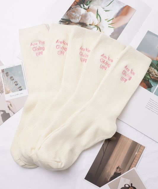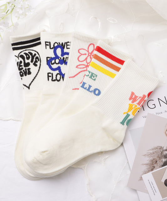 【5足セット】アルファベット刺繍カラーリブソックス