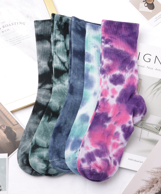 【5足セット】カラータイダイクルーリブソックス
