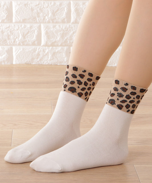 【6足セット】レオパード配色クルーソックス