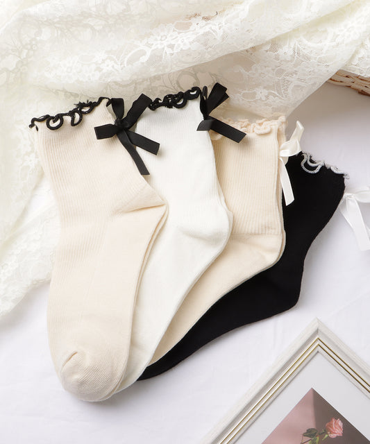 【4足セット】バックリボンメロウフリルクルーソックス