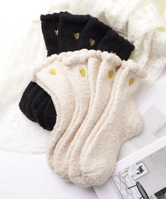 【8足セット】ハート刺繍付きふわもこショートソックス