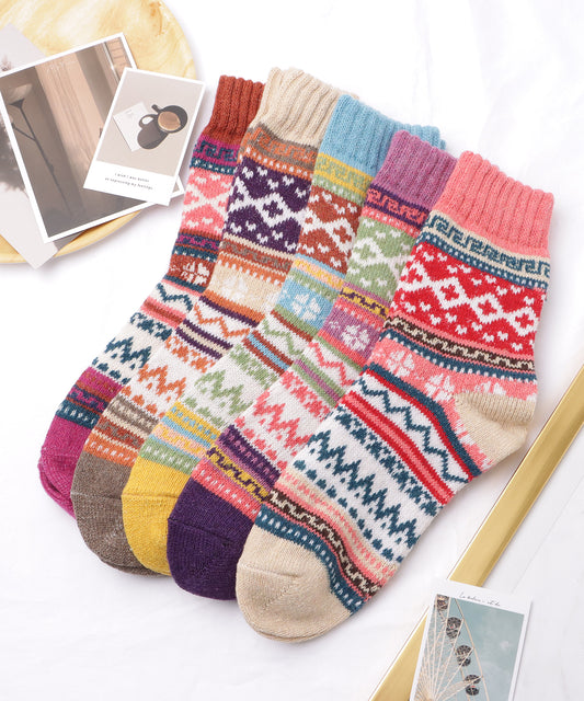 【5足セット】トライバル柄ボリュームニットソックス