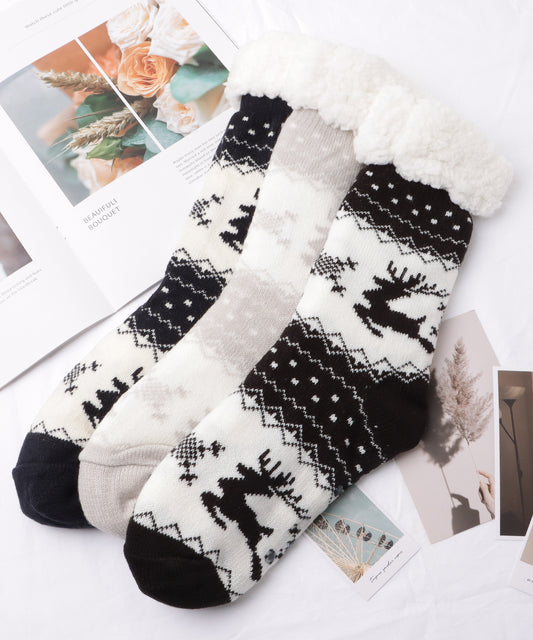 【3足セット】ノルディック柄ふわもこルームソックス