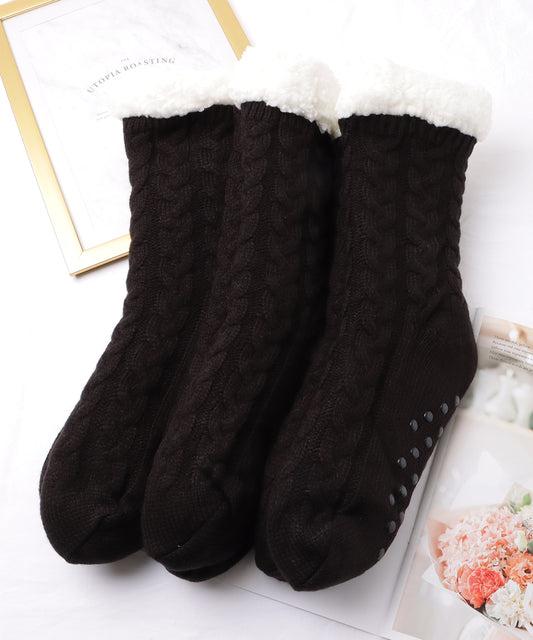 【3足セット】ケーブル柄ふわもこルームソックス