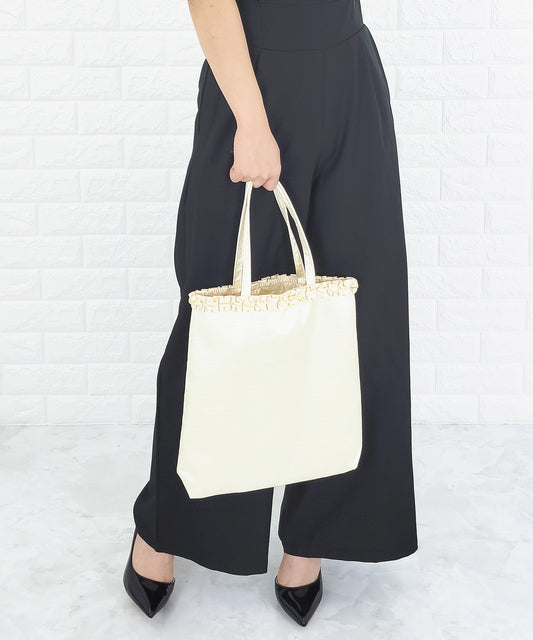 ギャザー フラップ コンパクト スクエア ハンドバッグ