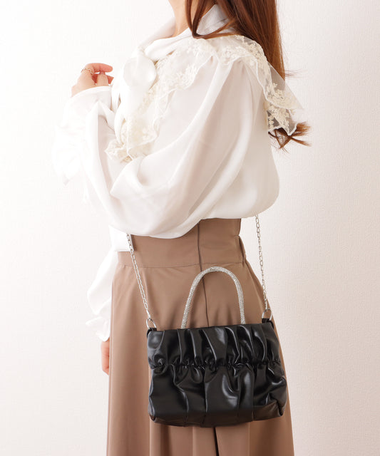 コンパクト ギャザー スクエア 2WAY ショルダー バッグ