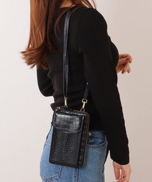 クロコダイルレザー調2WAYスマホショルダーバッグ