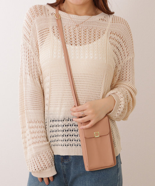 クロコダイル柄レザー調スマートフォンショルダーバッグ