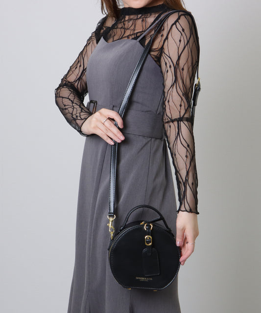 コンパクト ラウンド タグ付き ショルダーバッグ