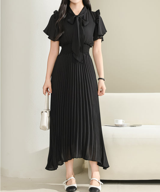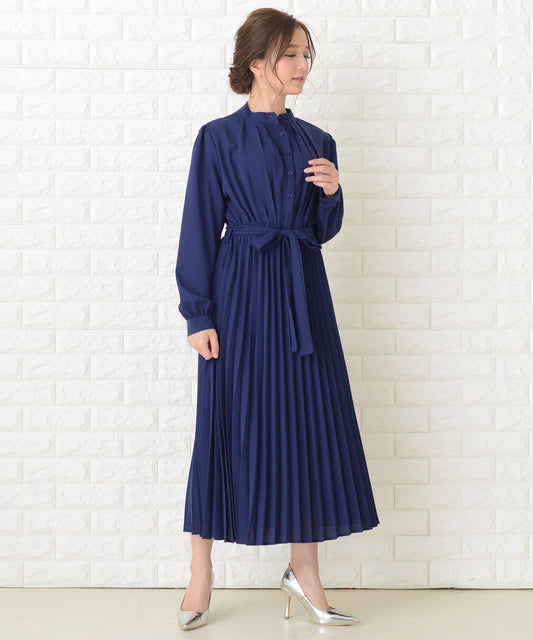 ウエスト シャーリング 半袖 プリーツ ワンピース