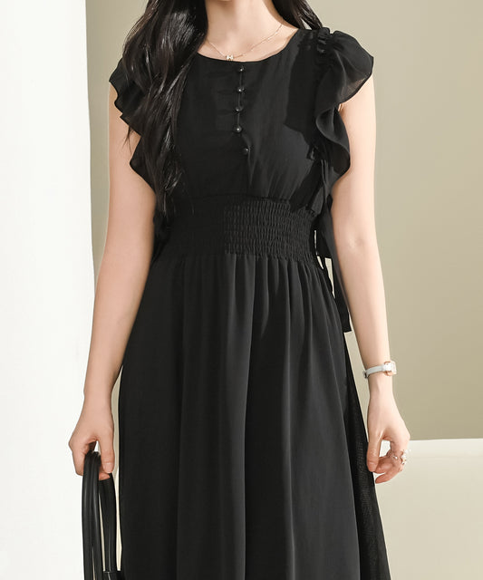 ウエストリボン付きシフォンフリル袖セットアップ・パンツドレス