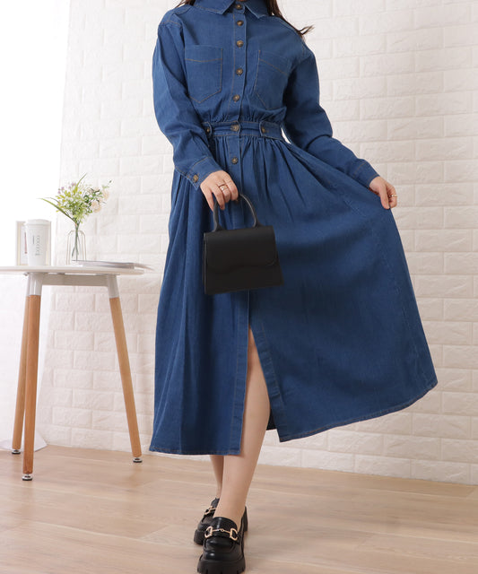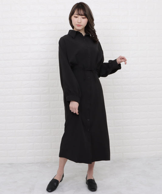 ウエスト シャーリング リボン フリル ロング ワンピース