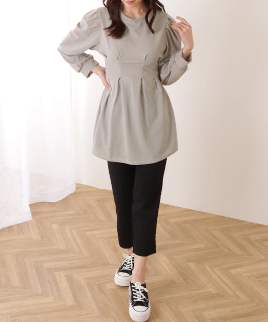 ウエスト タック バルーン袖 ミニ丈 ワンピース