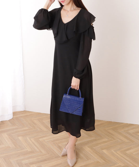 ギャザーシェイプロングシフォンワンピース