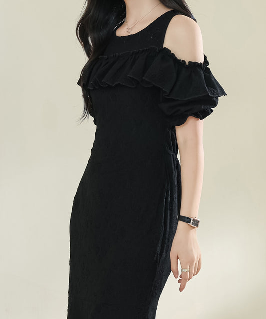 カットアウト パフスリーブ 総レース マーメイド フリル ワンピース