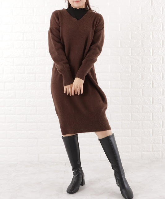 オーバーサイズ深Vネックニットワンピース