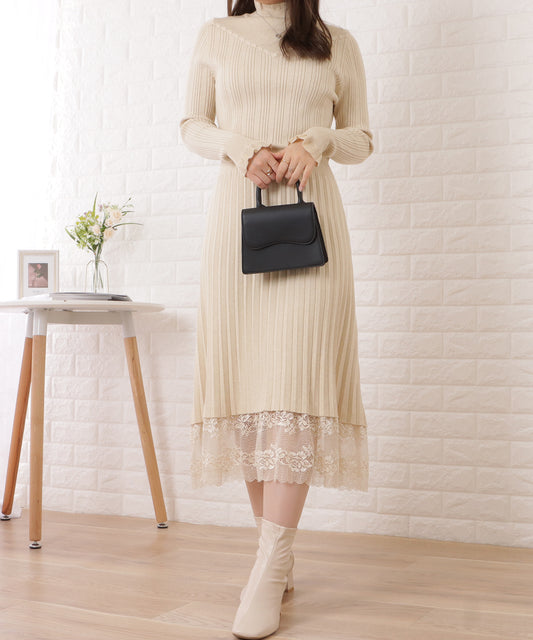 売り切れクラシカルリブニットプリーツワンピース