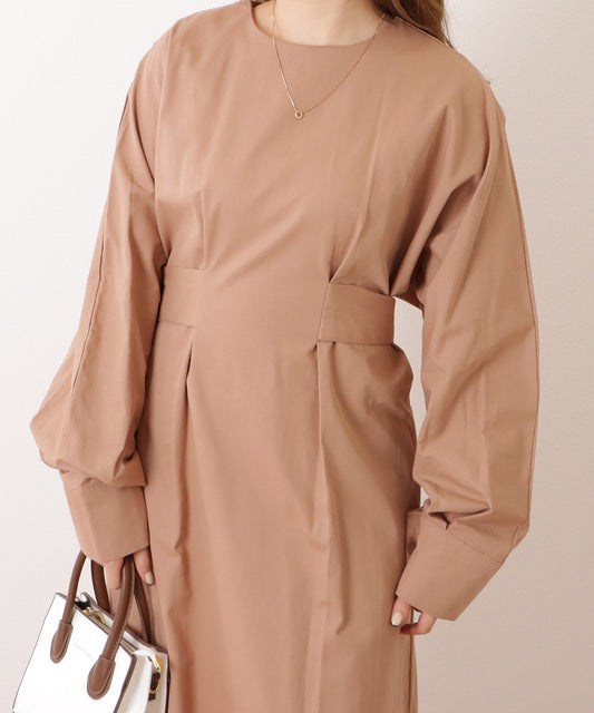 サイドスリット ウエスト タック ルーズ ワンピース