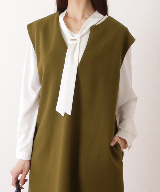 シアードッキングVネック長袖ワンピース