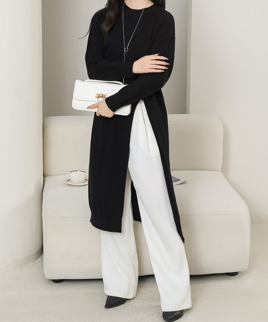 クルーネック サイド スリット ニット ワンピース