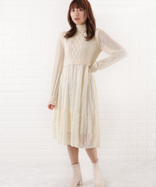 売り切れケーブルニットドッキングワンピース