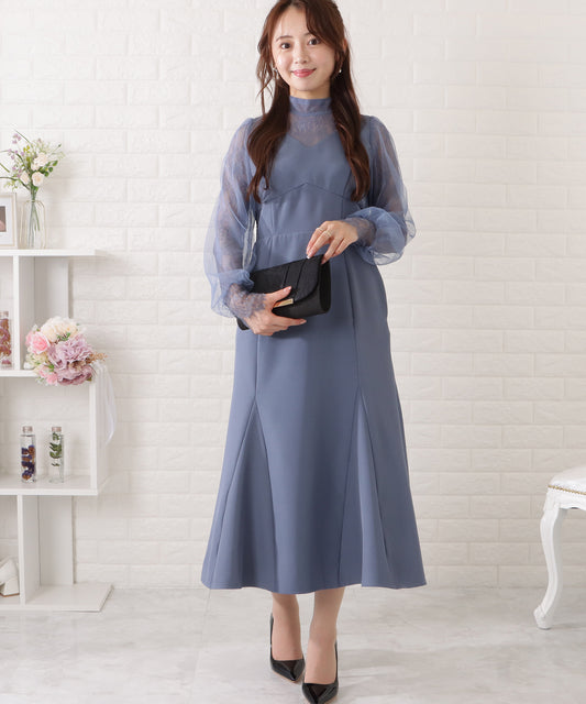 売り切れシアー袖タイトロングワンピース