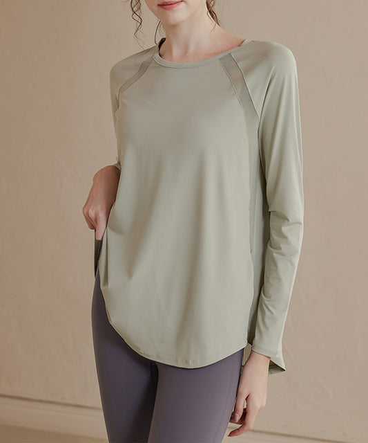 メッシュ 切り替え ラグランスリーブ バックスリット トップス