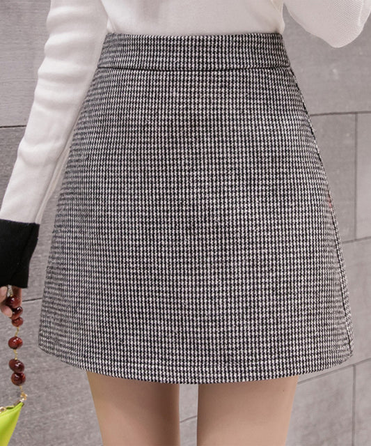 ウールライク 千鳥格子 ハイウエスト 台形 ミニ スカート