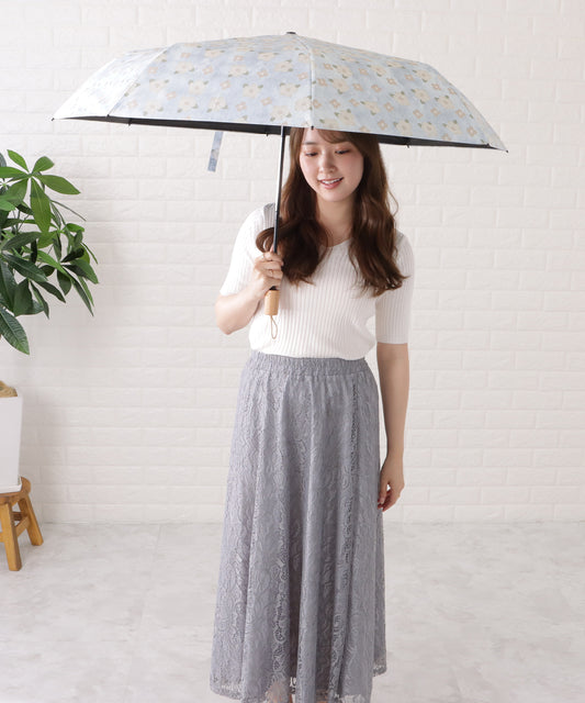 フローラル レース 刺繍 晴雨兼用 折りたたみ傘