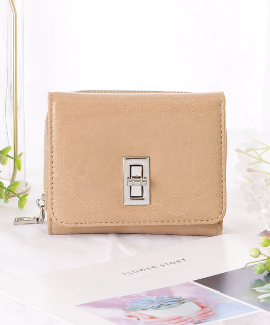 ロックパーツ付き レザー スクエア 三つ折り 財布