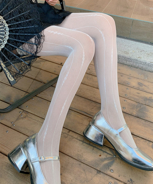 【3足セット】 ストライプ柄 ダイヤ レース シアー ラッセルタイツ