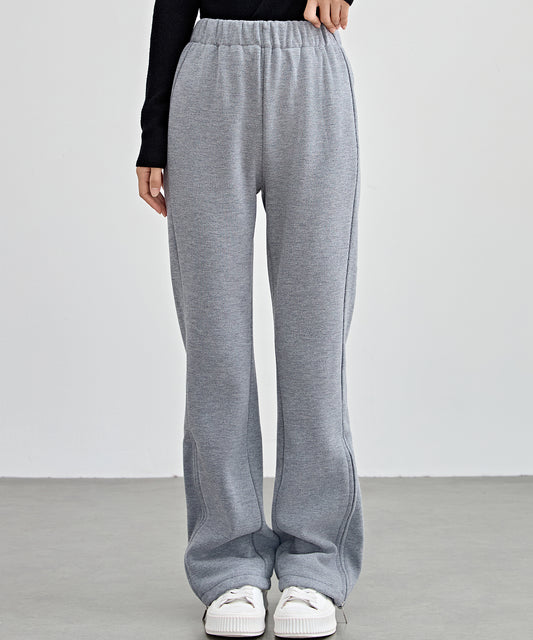 ハイウエスト 裾ジップ ストレート ニット イージーパンツ 裏起毛