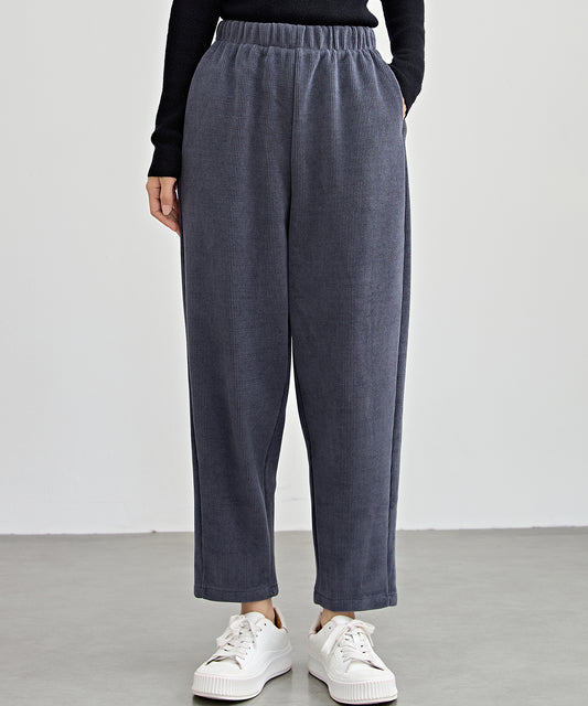 ソリッドカラー クロップド丈 テーパード イージーパンツ 裏起毛