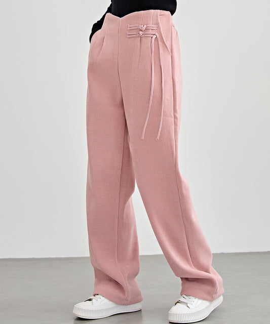 チャイナボタン コーデュロイ 裏起毛 ストレート タック パンツ