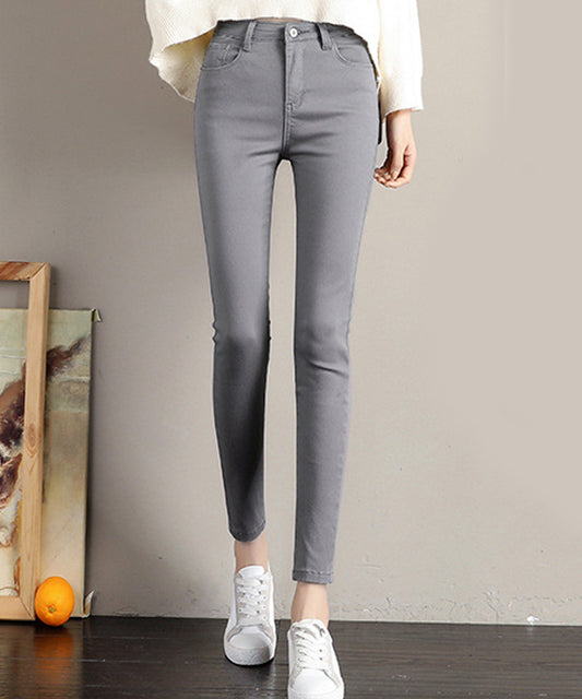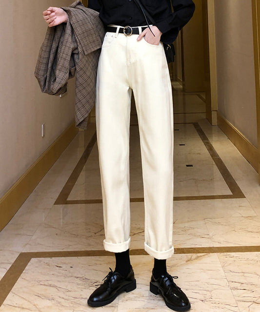 裏起毛あり/なし ハイウエストカジュアルコットンパンツ