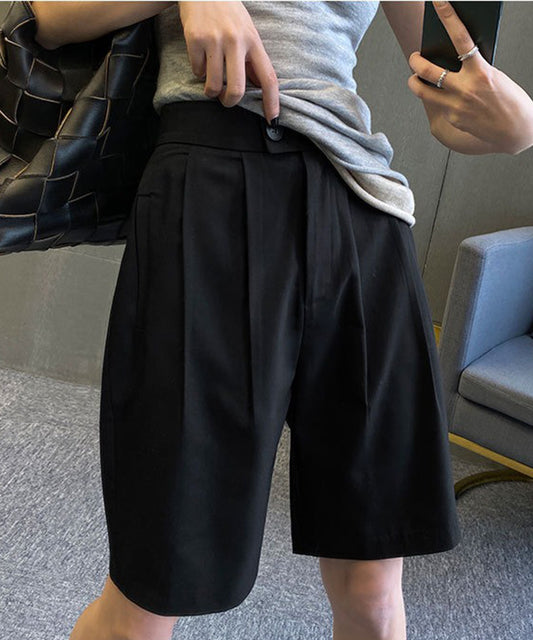 フロントボタン ダブルタック ハイウエスト ハーフ パンツ