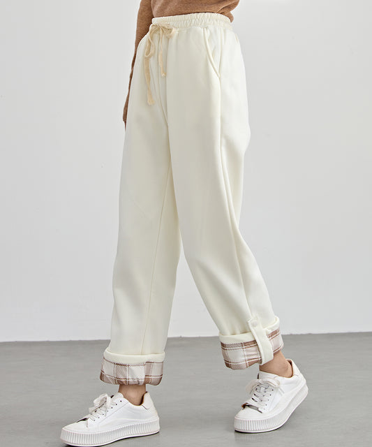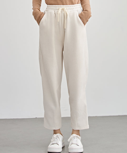 裏起毛あり/なし ハイウエストカジュアルコットンパンツ