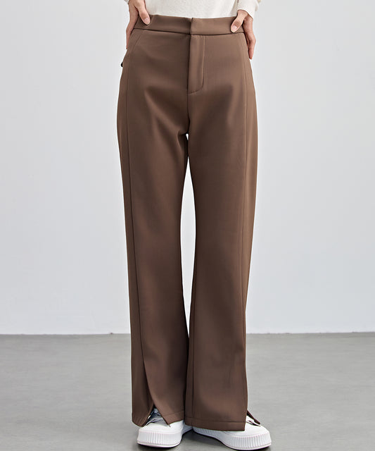 裾スリット ハイウエスト 裏起毛 ストレート パンツ