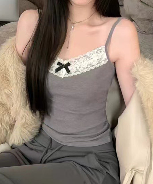 ヘンリーネック レーシィ クロップド カップ付き タンクトップ