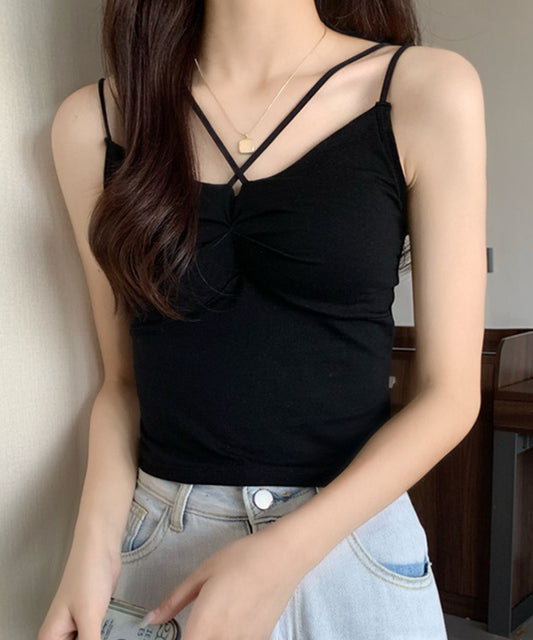 フロントギャザー クロスストラップ カップ付き クロップド キャミソール