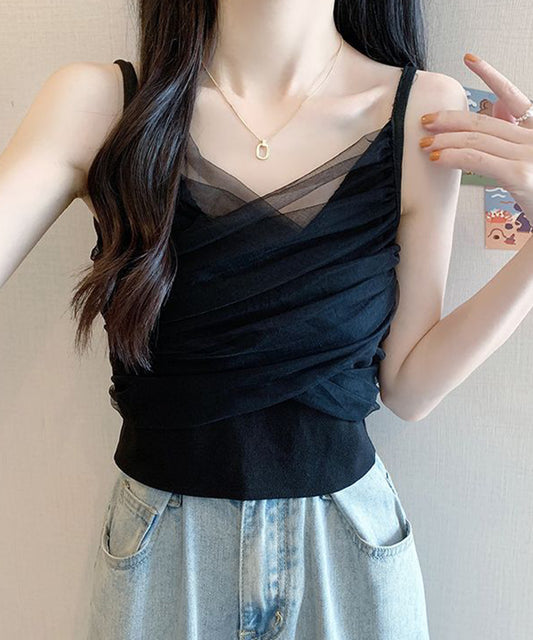 フリル裾 Vネック シャーリング クロップド キャミソール