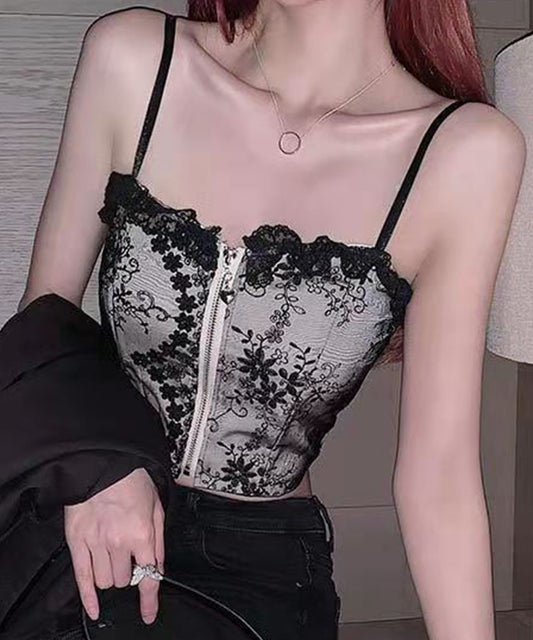 フラワーレース バックシャーリング コンパクト デニム キャミソール