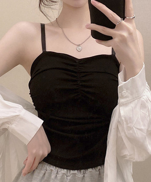 フレンチ ギャザー カップ付き クロップド キャミソール