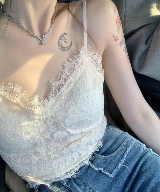フラワー レース スカラップ カップ付き クロップド キャミソール