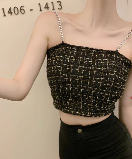 ツイード チェーンストラップ カップ付き クロップド キャミソール