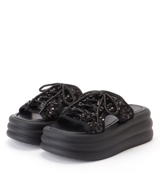 レースアップ スパンコール 厚底 コンフォート サンダル