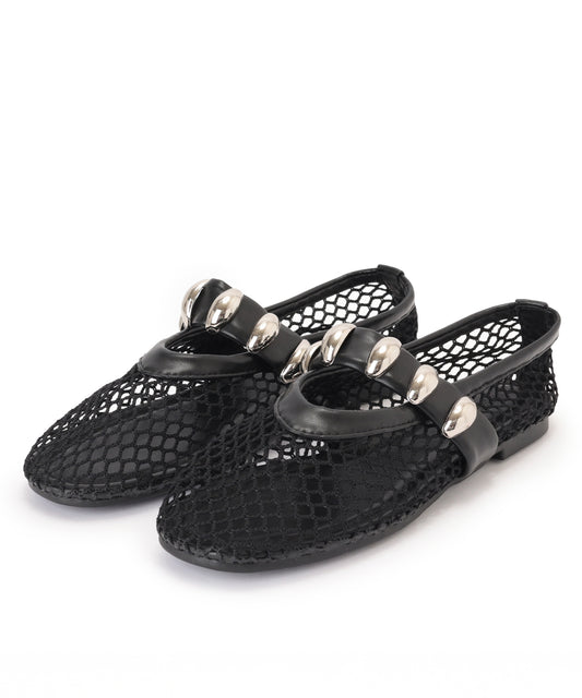 異素材 シルバー モチーフ メッシュ ストラップ サンダル シューズ