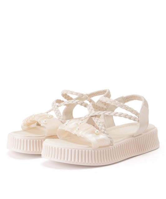 パールサテンストラップ厚底サンダル