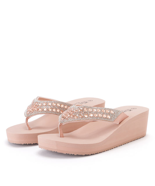 ビジュー付き厚底ヒールトングサンダル