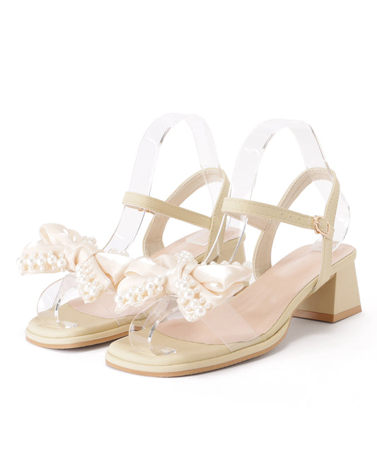 バックリボンパールストラップサンダル